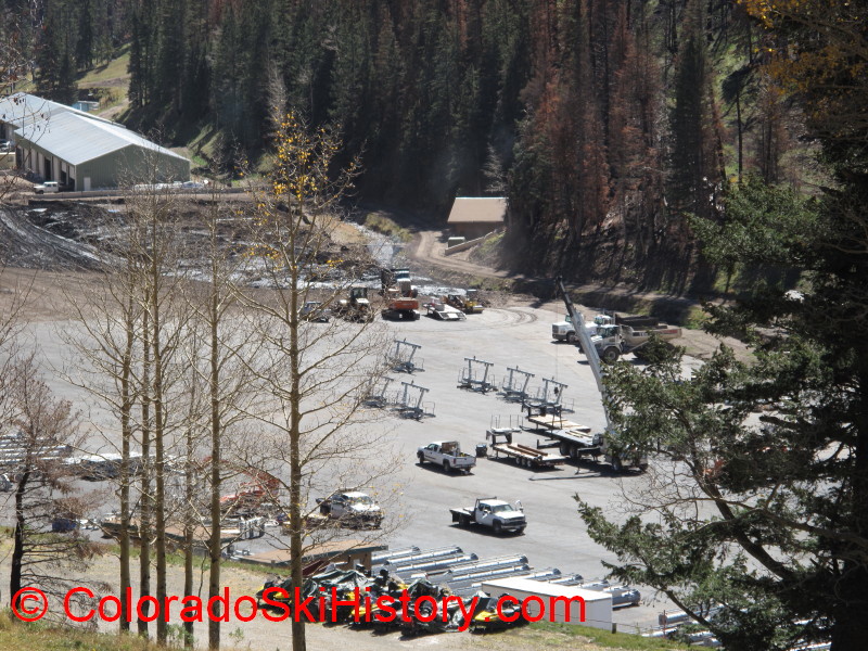 The lift construction staging area in the parking lot, summer 2012